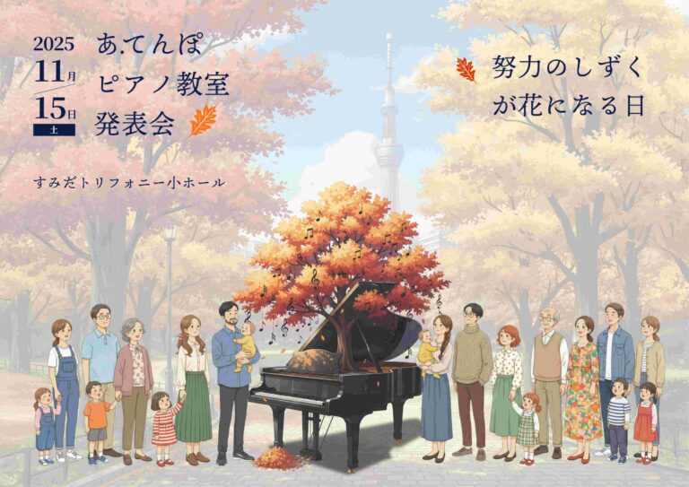 あ.てんぽ生徒さん全員出演!日頃の練習の成果を発表する場として、音楽仲間との交流の場として、あ.てんぽ発表会は、音楽の楽しさを分かち合う特別なイベントです。